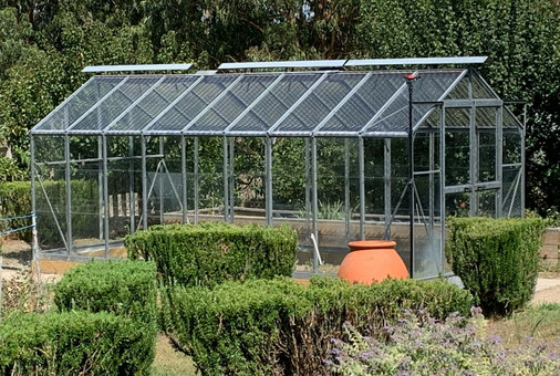 This summer we were given 1000 old red bricks and inherited a 30year old glass house. Anyone who knows me knows how much I love old and recycled stuff(especially if it's free). Unfortunately the bricks were still laid in a patio which we had to lift and load into the horsefloat - in scorching temperatures I might add. I replaced all the summerhill stone edging in the south garden for a much more traditional look. The summerhill will look better as edging in the oriental garden… eventually. The glasshouse has gone into l’orto. That was a mission and a half to get it home. After removing all the glass and cutting it into 3 sections it took 2 trips with the trailer and a lot of bracing and tie downs. ~We questioned whether it was worth it several times. A lot of the glass was already broken so we decided to put a corrugated polycarbonate roof on it and use the roof glass to make up the sides. Since Alex built a box base for it as well as adding a new roof it wasn’t exactly free but a new glass house of this size is around $6000 so I think it was worth it in the end.